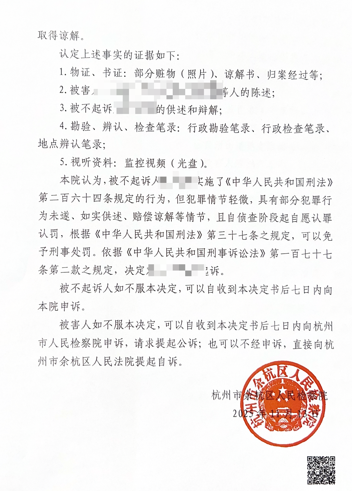 【不起诉决定书】