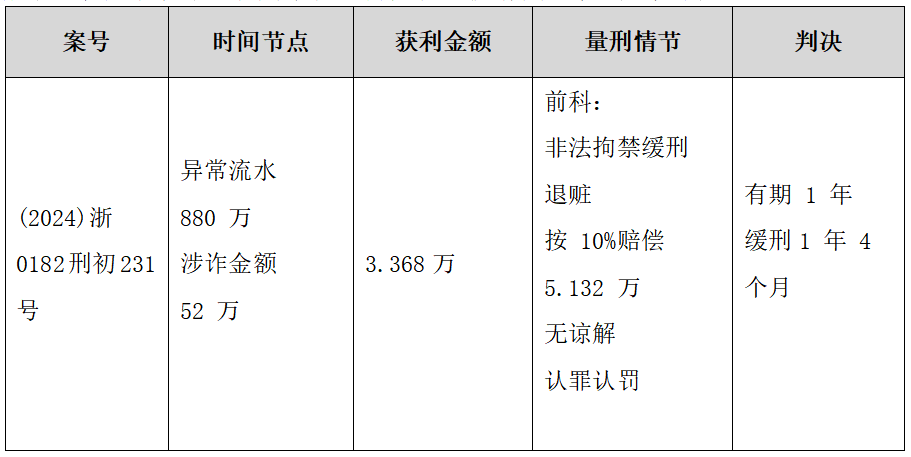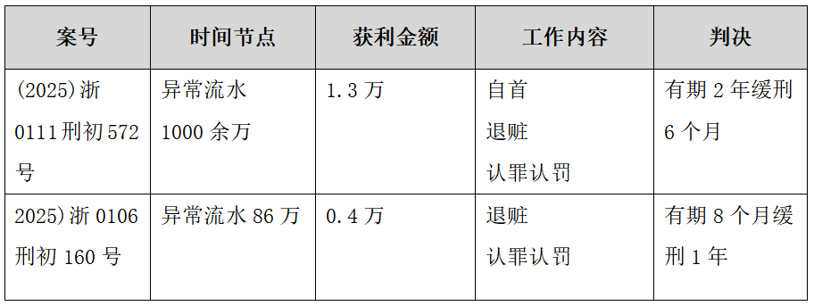 第四,辩护人提供以下2025年杭州辖区内帮信罪案例以供参考,在流水金额远高于王立靖所涉金额的情况下,其他案件在未获取谅解的情况下按照缓刑处理。