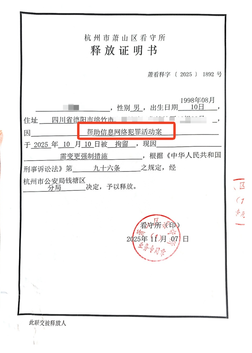 当事人于2015年有抢劫罪前科,判处2年缓刑。2025年10月3日,当事人张某因四年前出借银行卡给同学走流水,被杭州市钱塘区分局刑拘,经会见了解,共提供四张银行卡,涉诈流水40万,钱塘区当地有一位被害人,受骗金额10万左,案发时,尚有大量同案犯在逃,均为高中同学。
